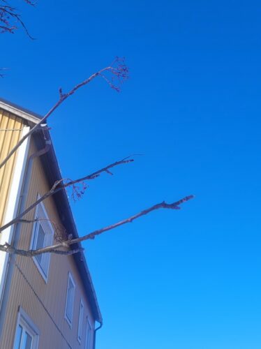 Net voor Pasen weer een paar mooie dagen in het Zweedse Kiruna doorgebracht. Vanuit ons raam zagen we deze boom.