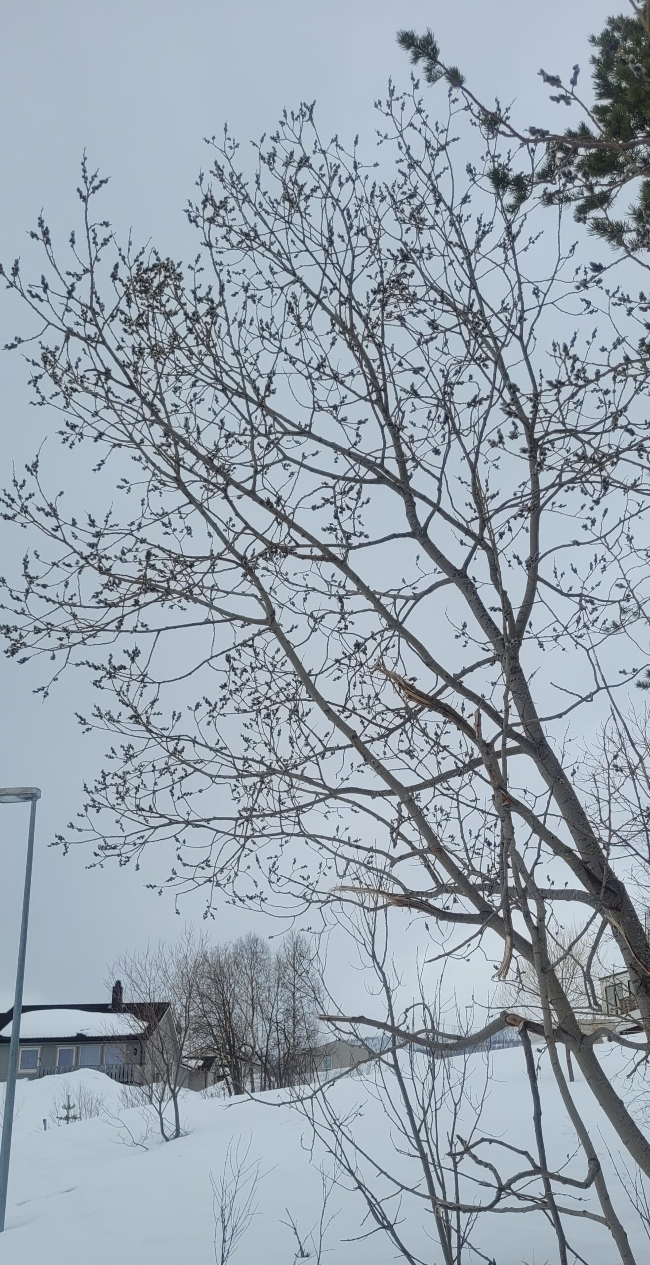 Wilg met mannelijke katjes. Het verschil tussen mannelijke en vrouwelijke katjes kun je nu nog niet zien. Maar ik weet van vorig jaar dat de katjes aan deze boom later geel worden.